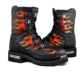 Step into a Hot Pair of X-Element Fire Starter Motorcycle Boots.Shaft is 8 inches and Heal is 1 3/4 inches. Item DetailsThis 8' boot gives new meaning to the phrase 'bringing heat.' This lace-up monster has a padded collar for added comfort Full grain leather uppers for long, durable wear Oil-resisting rubber outsole Flamed Design with Chrome X-Element Logos Goodyear welt construction Buy with confidence from the webs most popular leather store Low price highest quality guaranteed