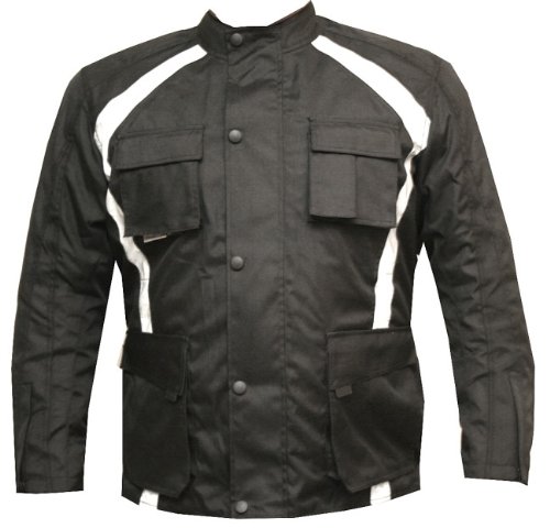 Outer shell made of D600 Poly Cordura.Waterproof liner permanently attached to outer shell for complete waterproofing.All external pockets contain waterproof liner and fold over closure.Five piece Armor. Shoulder and elbow armor is made of injection-molded plastic. Back piece is made of double density foam.Injection molded armor used in this jacket leaves foam armor used in jackets by other sellers in dust.8" & 360 degree pant attachment zippers. This allows the jacket to zip up with various pants from different manufacturers.Fixed Reflective bands in front and back gives riders extra visibility in low light.Removable full sleeves liner.Chest pocket for cell phone, electronics and music players.Multiple pockets in front, sleeve and inside of jacket.